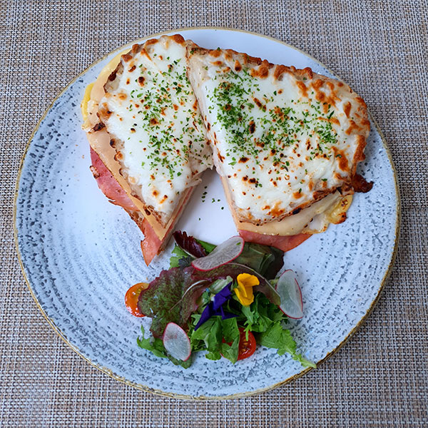 خبز المحمص مع لحم العجل وجبن المزارع العضوي.
